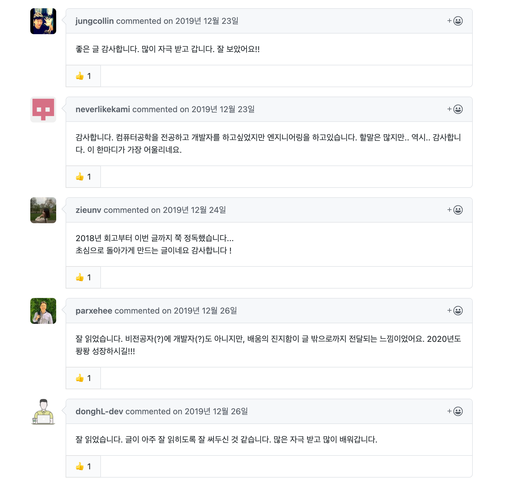 1년 전 오늘, 체대 출신 개발자의 2018년 회고를 블로그에 올렸다. 그런데 이틀간 페이지뷰 2만을 넘기며, 과분한 관심과 감사한 응원을 받았다. 특히 평소에 우러러보던 개발자분들이 자극받았다는 피드백을 주셔서, 대단한 일을 한 것 같은 착각마저 들었다.