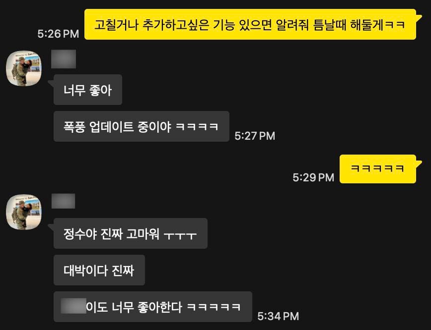 Posteady는 아직 100% 무료이기 때문에 도파민 터지는 결제 알림은 받지 못하고 있지만, 초기 고객들의 자발적인 사용 후기들 덕분에 매일 열심히 개발하고 있다.